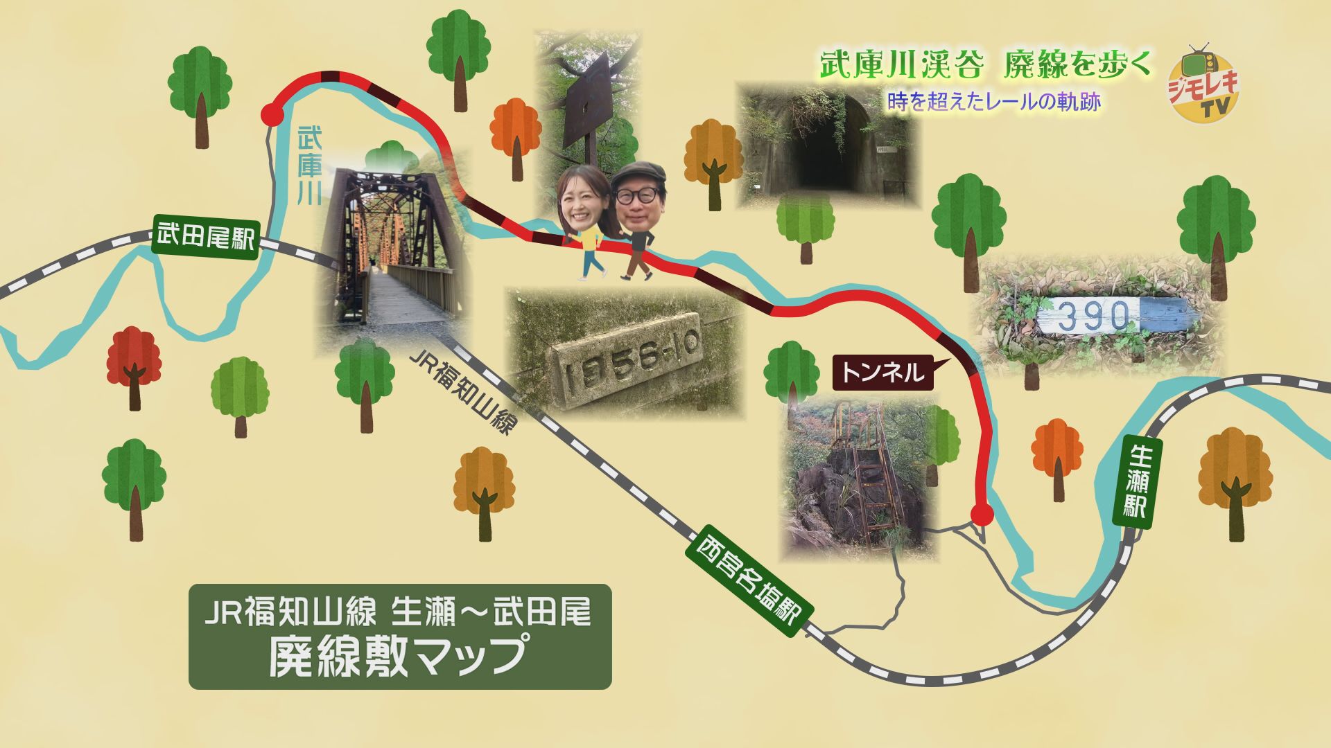 旧福知山線の廃線跡を歩き、武庫川渓谷の絶景や名所紹介と共に